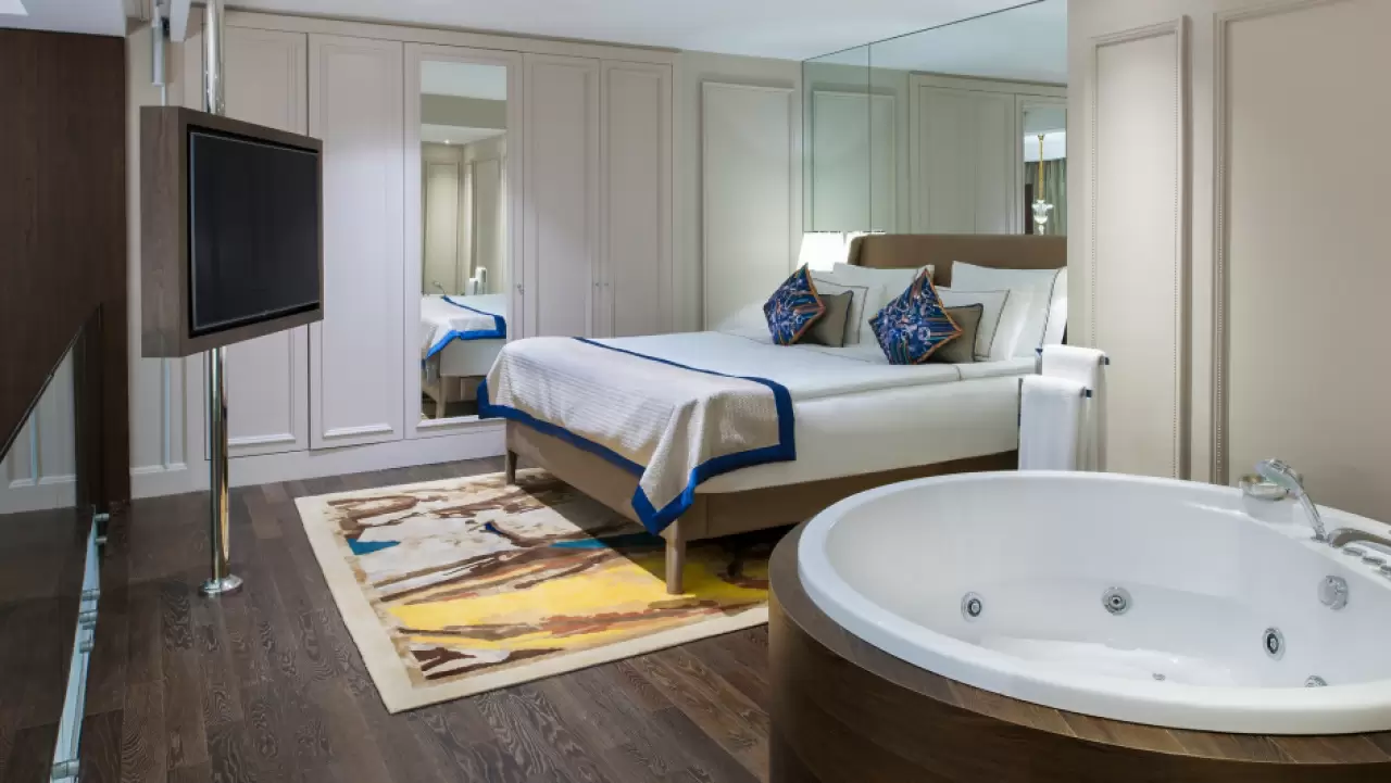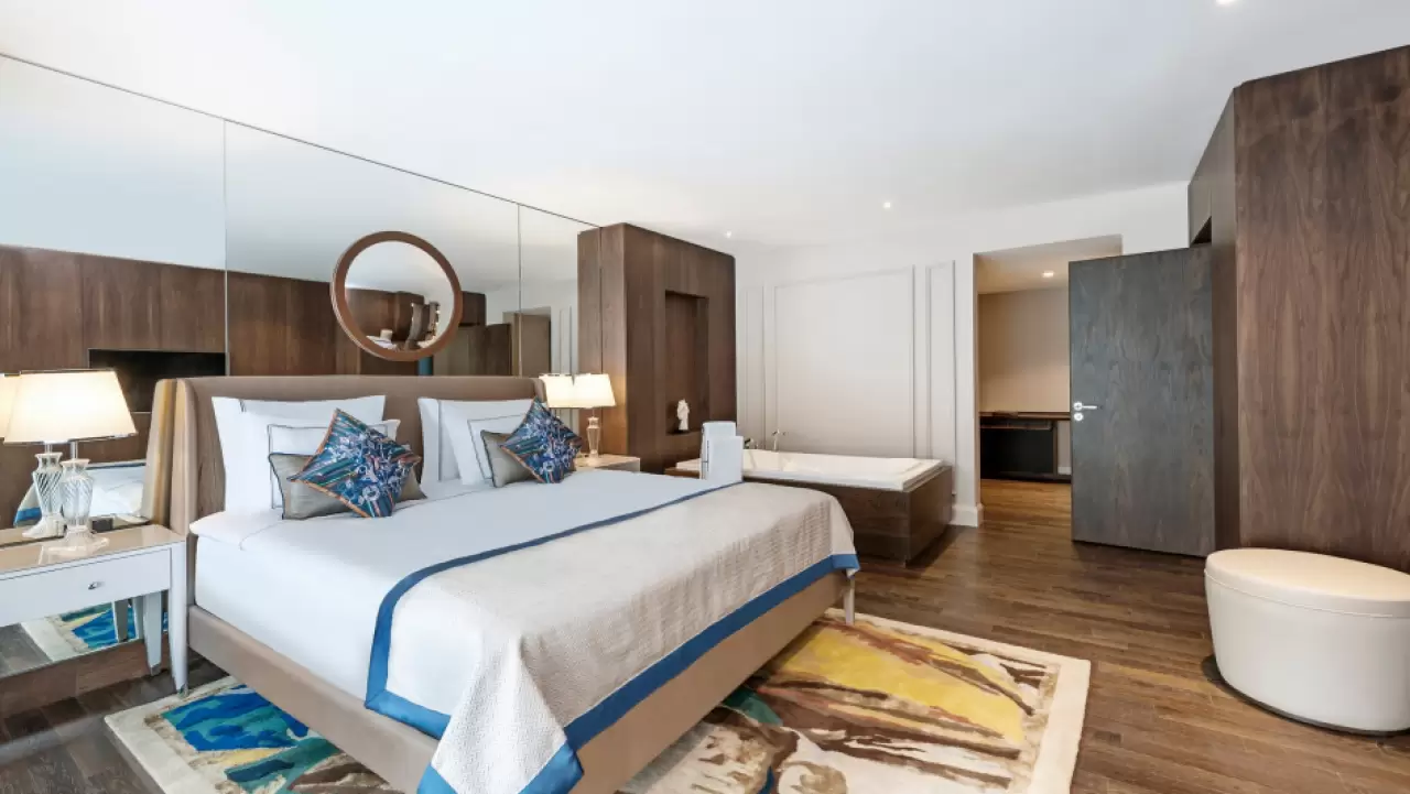 Odalarımız ve süitlerimiz saray malikanelerinin ihtişamını yansıtır; her biri ince detaylar, pelüş konforlar ve kraliyete benzer bir konaklama vaat eden panoramik manzaralarla tasarlanmıştır. Geniş yerleşim düzeninden ısmarlama mobilyalara kadar Kaya Palazzo'daki konaklamanızın her yönü zarafet ve incelikle dokunmuştur.